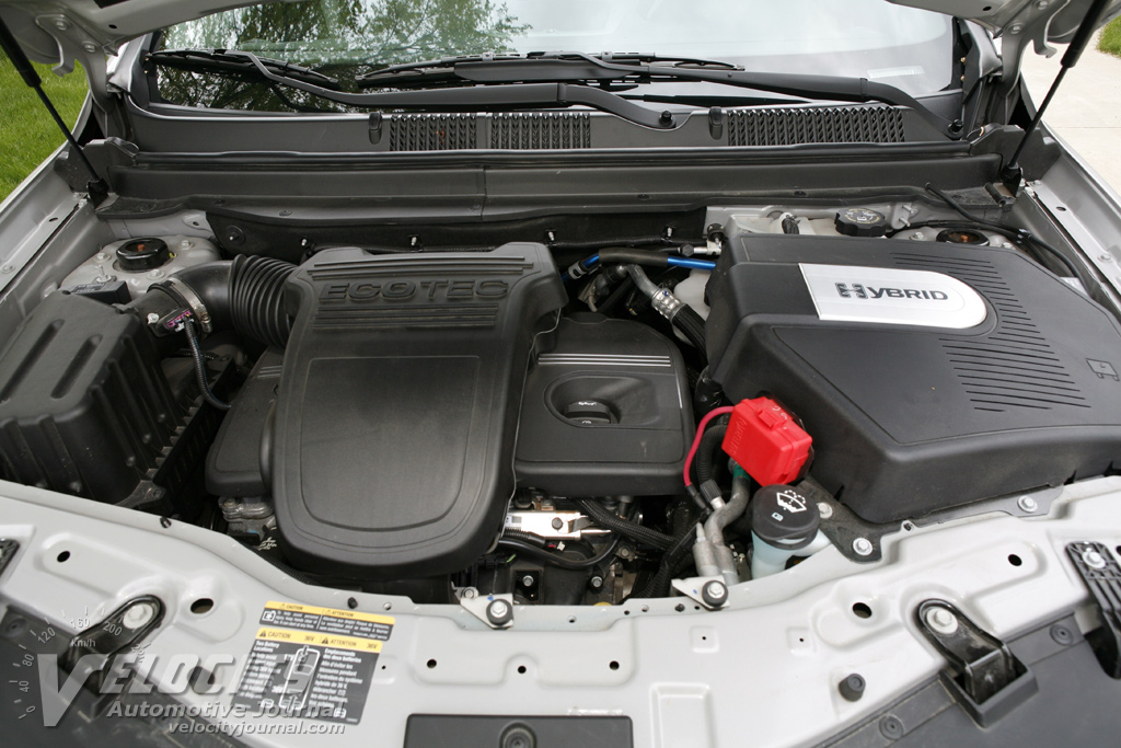 Like most other small SUVs, the 5-passenger Vue is available with a FWD or AWD driveline. Engine choices include a 2.4L inline-4, as well as a 3.5L or 3.6L V-6 powerplants mated to 4-speed (inline-4) or 6-speed (V-6) automatics. AWD Vue models are only offered with the 3.5L or 3.6L engines. GM offers two hybrid versions of the Vue (FWD only): the Vue Green Line and the newly introduced 2 Mode Hybrid (2009 model). We tested a 2008 Vue Green Line, which adds an electric motor/generator and battery pack to the 2.4L 4-cylinder engine. The hybrid system uses the electric motor to boost acceleration and turns off the gasoline engine at idle to save fuel. When slowing down, regenerative braking captures energy to recharge the battery pack. GM classifies the Vue Green Line as a mild hybrid, because it cannot run in fully electric mode.