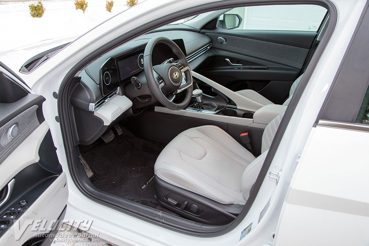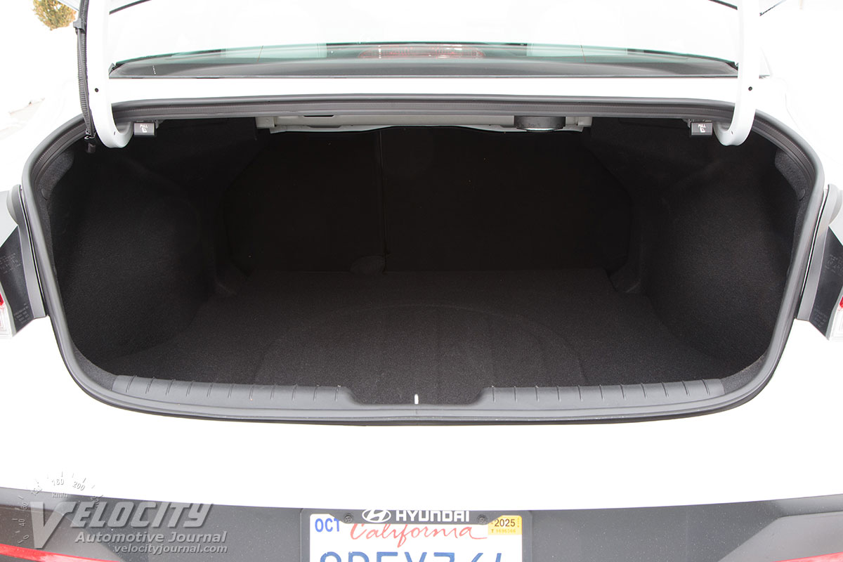 We tested a 2025 Elantra Hybrid Limited ($29,450) painted in Serenity White ($470). The only option was carpeted floor mats ($210). Including the freight fee ($1,150), the price totaled up to $31,280. Note that Hyundai has raised the MSRP of the Elantra Hybrid Limited. Significant standard equipment includes 6-way power driver's seat with lumbar support, heated and ventilated front seats, 8-speaker Bose(R) audio system, 10.25-in. infotainment display, navigation, Qi wireless charging pad, and Wi-Fi hotspot. Safety technologies include smart cruise, forward collision-avoidance, blind-spot collision-warning, rear cross-traffic collision-avoidance and lane keeping assist.